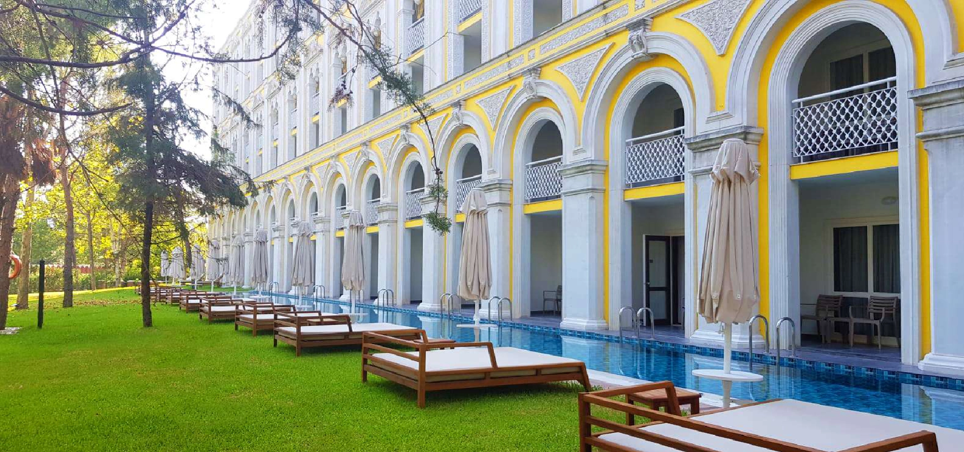Das Kremlin Palace Resort befindet sich inmitten eines, großzügig angelegten, botanischen Gartens. Innerhalb dieses Gartens befindet sich das Haupthaus und die Bungalowzimmer.