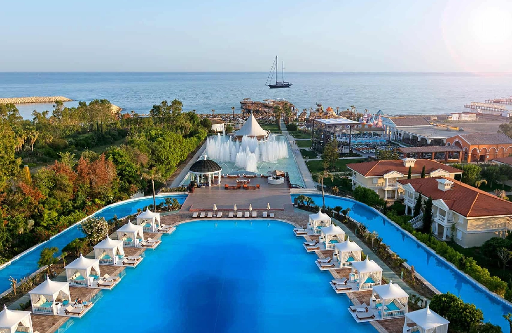 Das Titanic Mardan Palace 5+ heißt Sie willkommen in der berühmten Riviera der Türkei, mit einer 5-Sterne Eleganz, preisgekröntem Service und einer bildschönen Ortschaft. Sie finden unser luxuriöses All-Inclusive-Hotel in Antalya am Ufer des Mittelmeers. Hektar große Pools im Lagunenstil erstrecken sich zu einem privaten Sandstrand, während die prächtige Architektur des Resorts einige der bemerkenswertesten Sehenswürdigkeiten Istanbuls widerspiegelt. Von der stattlichen Dolmabahçe-Lobby mit ihrem palastartigen Design und der auffälligen Glasdecke bis zu den prächtigen und sorgfältig Eingerichteten Unterkünftene ist hier alles so gestaltet, dass es entzückt und inspiriert. Unser palace all-inclusive-Speisekonzept umfasst über 30 renommierte Restaurants, Bars und Lounges. Zu den Freizeitaktivitäten vor Ort zählen ein Championship-Golfplatz, ein von KLAFS designtes SPA , der Tini Kids Club sowie ganzjährig Sport und Unterhaltungsprogramme.